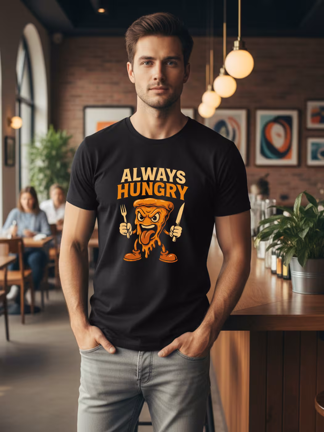 Bold and fun, the Always Hungry Mascot T-shirt captures your playful energy with a standout design and superior comfort for everyday wear.