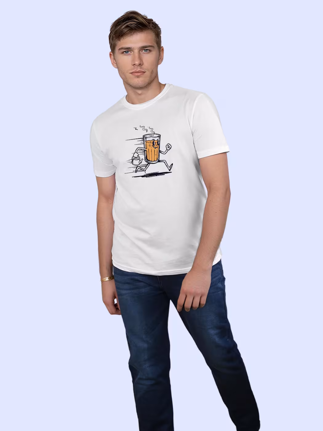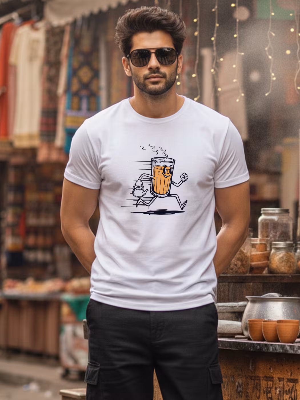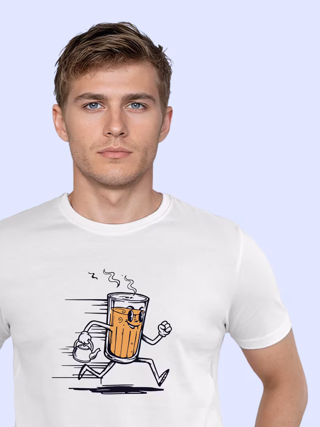 Run on chai power with this stylish half-sleeve tee, ideal for those who hustle hard and find energy in every cup.