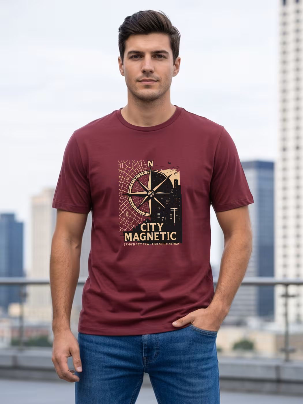 City Magnetic Printed T-Shirt for men with half sleeves. Perfect blend of comfort and casual style. Ideal for everyday wear, parties, or gifting.