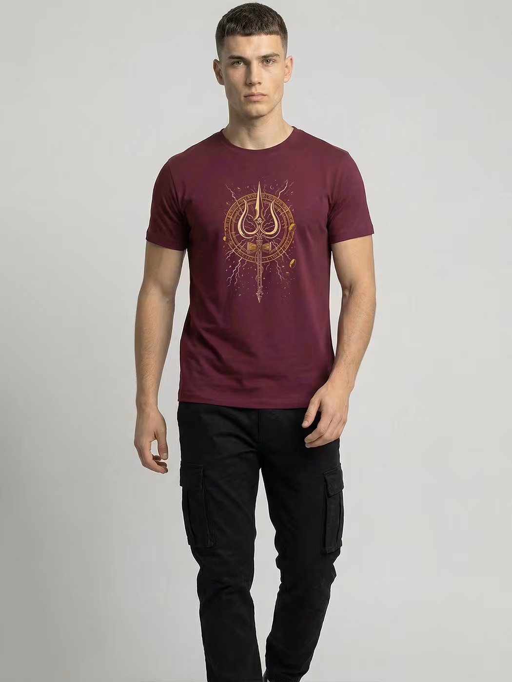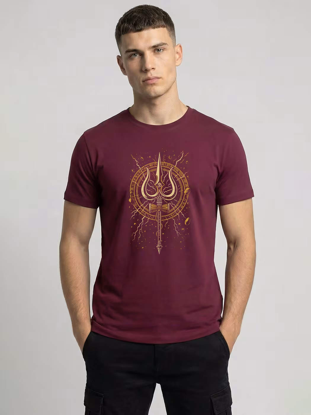 The Golden Trishul T-Shirt blends spiritual symbolism and bold design. Crafted for comfort and style, it’s perfect for expressing faith and strength with modern fashion.
