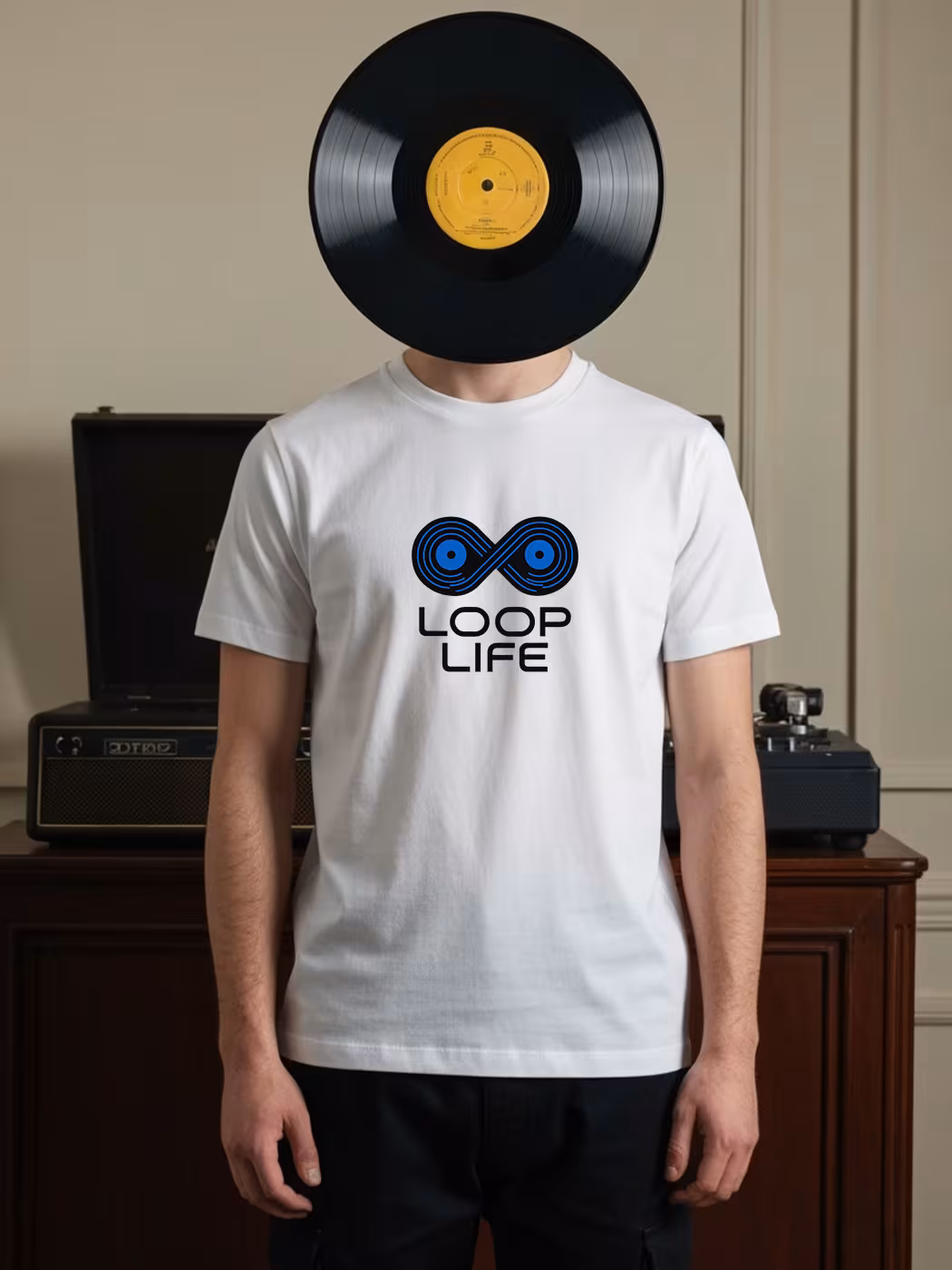 Loop life never ends—this half sleeve tee captures endless rhythm. Ideal for music enthusiasts who vibe with non-stop beats and lifestyle energy.