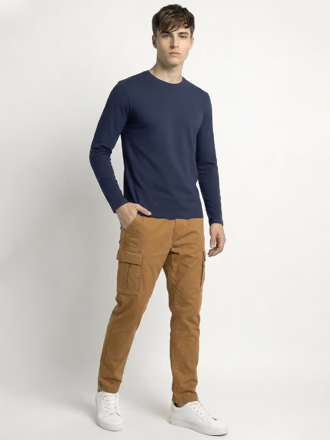 Men’s Plain Navy Blue Full Sleeve Round Neck T-Shirt