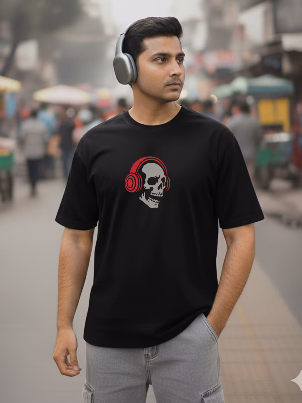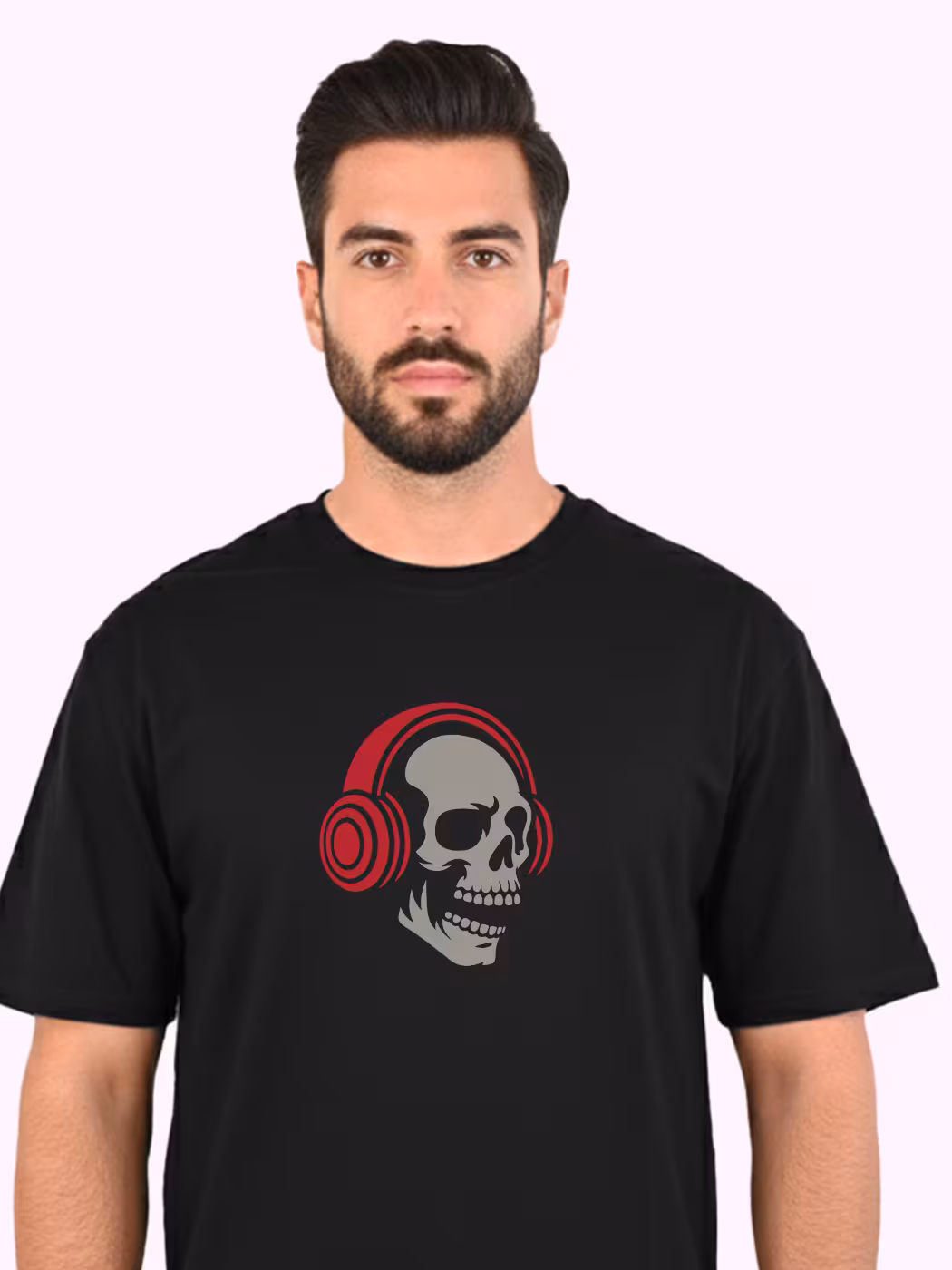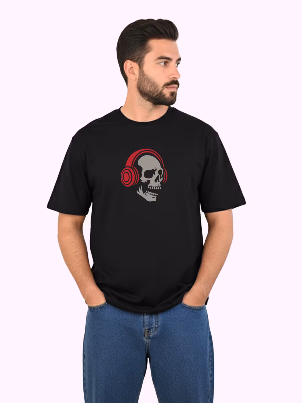 Rock your vibe with this oversized Music Skull T-shirt, blending music, art, and attitude in a bold design made for comfort and street-ready style.