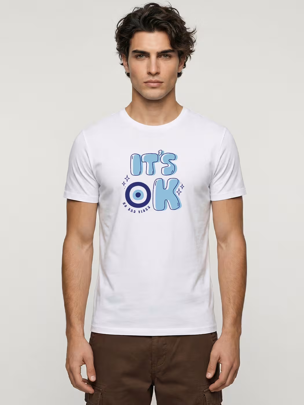 Spread positivity with the No Bad Vibes tee, crafted from soft cotton, offering comfort, minimal style, and a laid-back look perfect for daily wear.