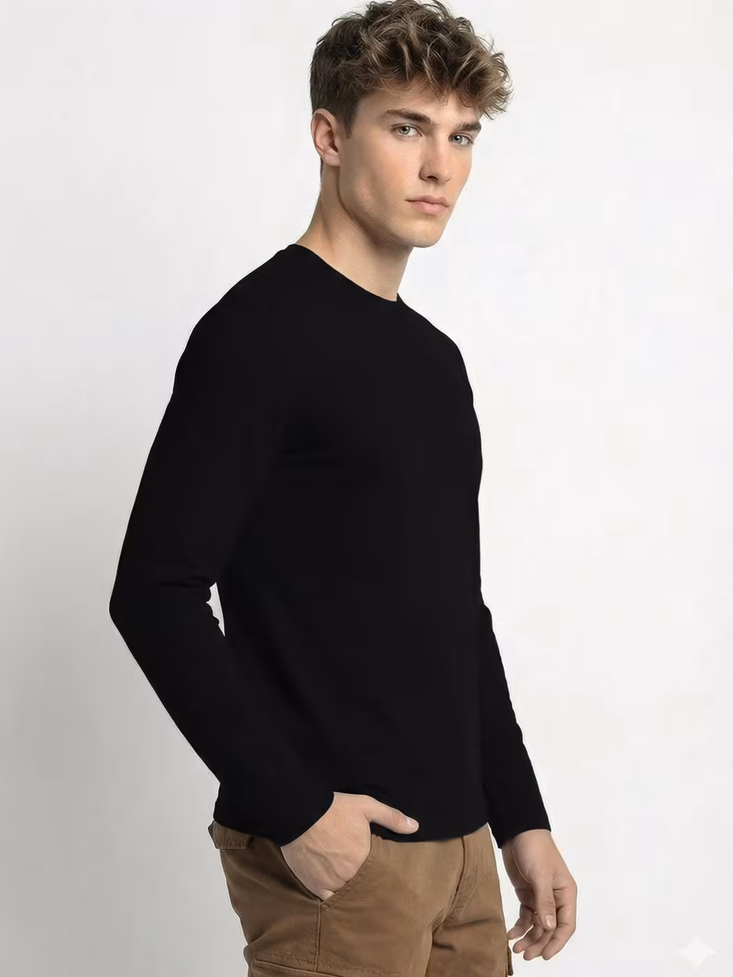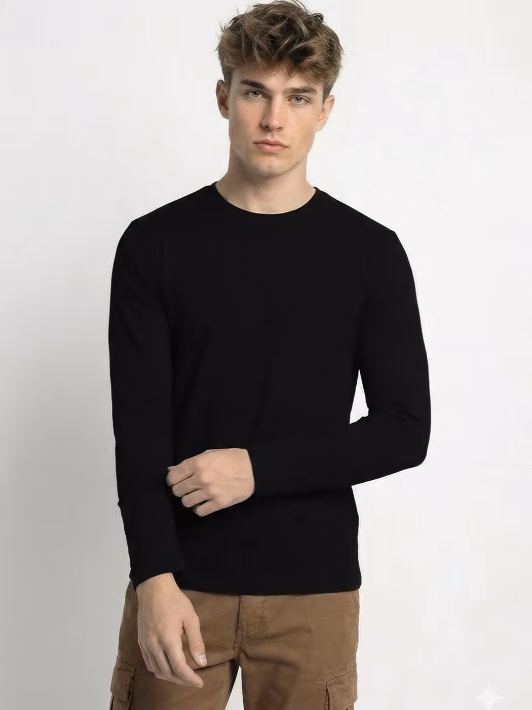 Men’s Plain Black Full Sleeve Round Neck T-Shirt