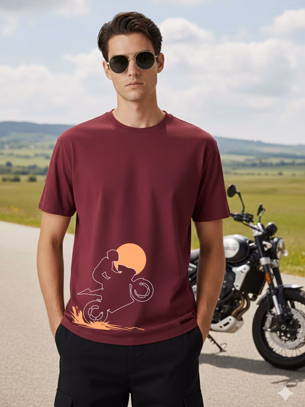The Ride T-Shirt For Men – Half Sleeve blends style and comfort with minimalist motorcycle-inspired graphics, soft cotton fabric, and a perfect fit for everyday rides or casual adventures.