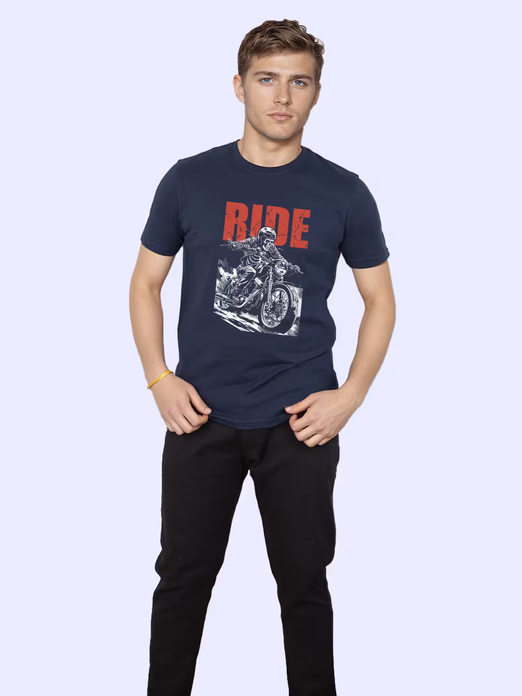 The Ride Your Bike T-Shirt For Men – Half Sleeve blends style and comfort with minimalist motorcycle-inspired graphics, soft cotton fabric, and a perfect fit for everyday rides or casual adventures.