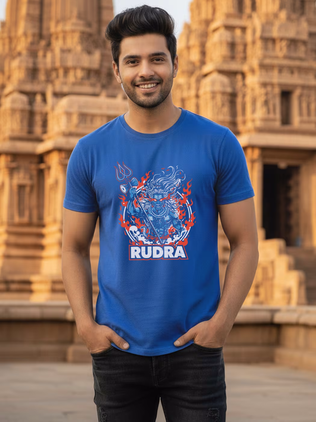 Channel divine fury with the Rudra T-Shirt. Designed for men who carry fierce energy and calm wisdom, made with breathable fabric for spiritual streetwear style.