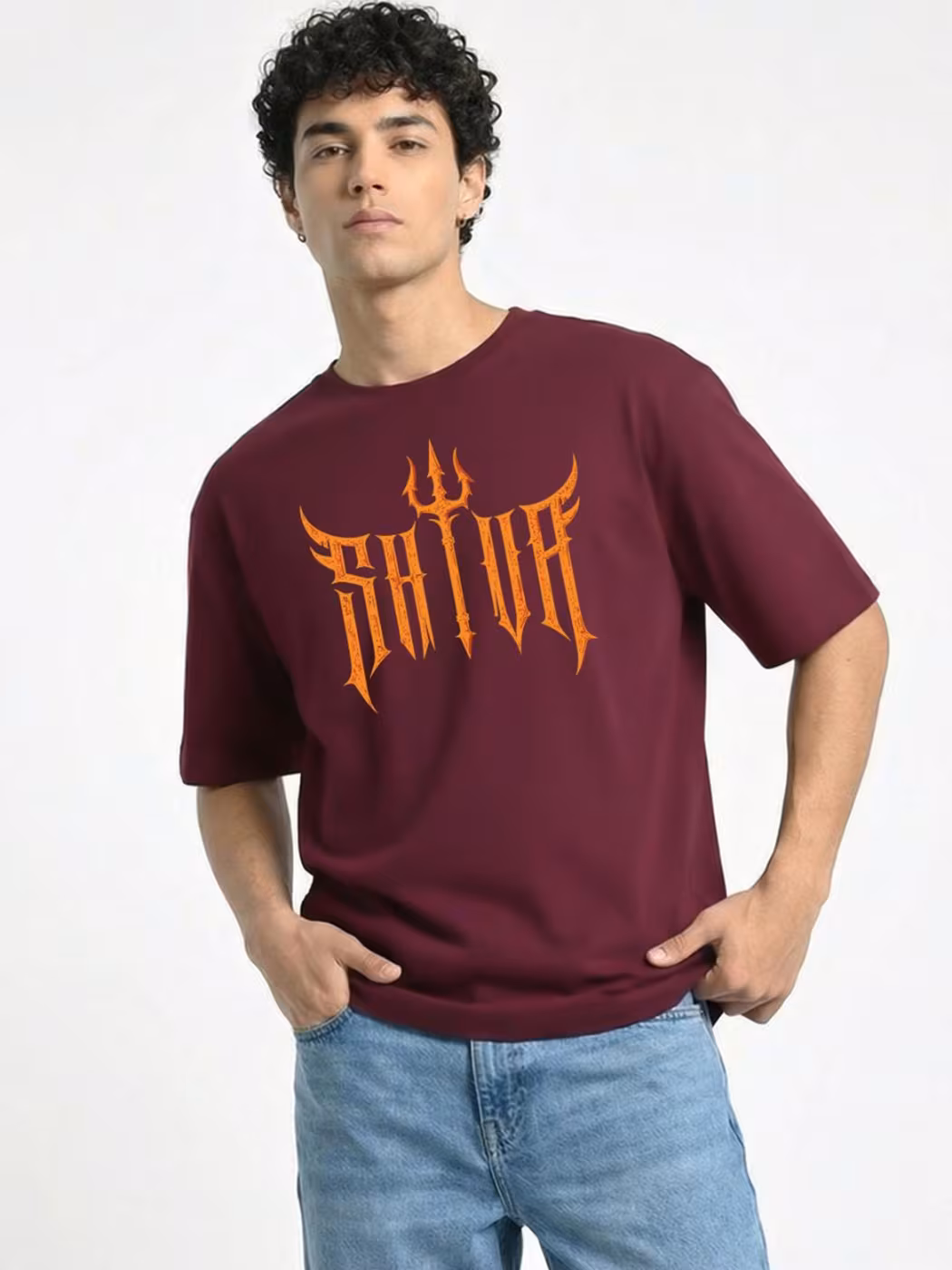 Oversized streetwear T-shirt with Shiva Trishul graphic. Comfortable fabric and relaxed fit, perfect for everyday wear with spiritual street vibes.