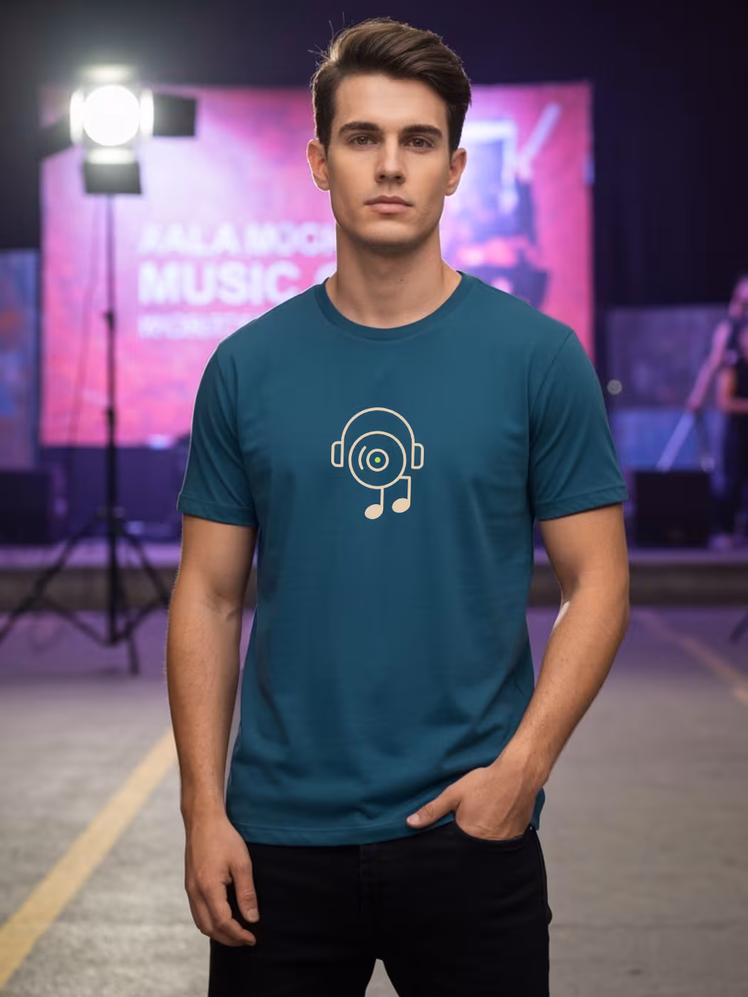 Retro music-inspired half sleeve T-shirt for men with vinyl record graphics for vintage vibes.