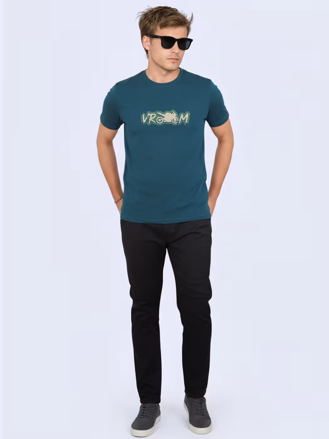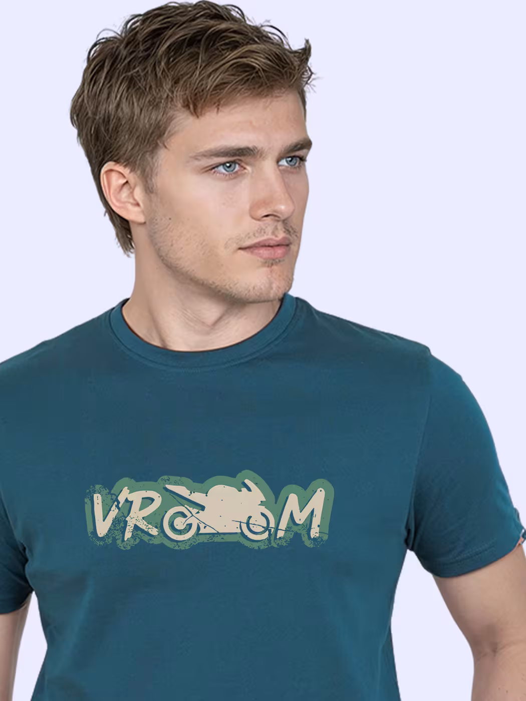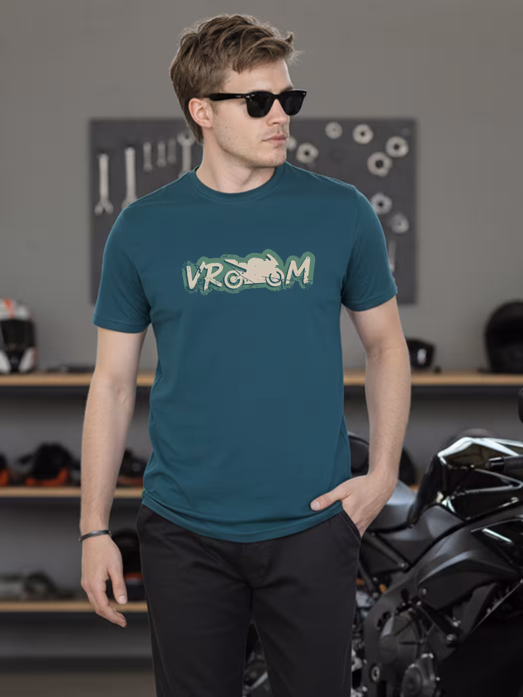 The Vroom T-Shirt For Men – Half Sleeve blends style and comfort with minimalist motorcycle-inspired graphics, soft cotton fabric, and a perfect fit for everyday rides or casual adventures.