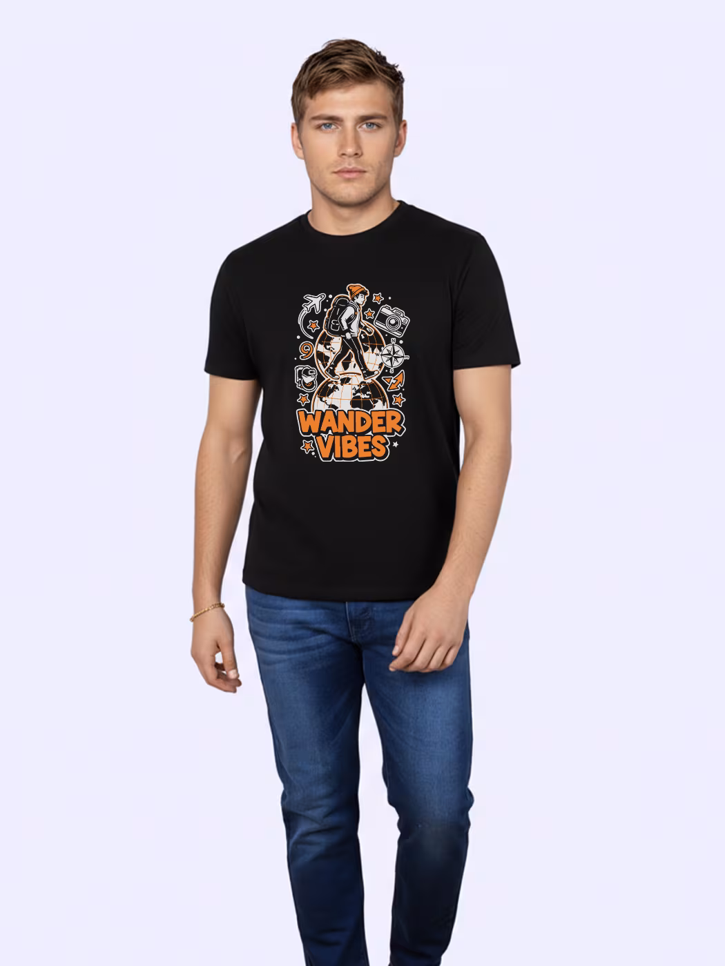 Embrace good energy with the Wander Vibes T-Shirt. Perfect for explorers and dreamers, this lightweight half-sleeve tee brings effortless comfort and a positive vibe.