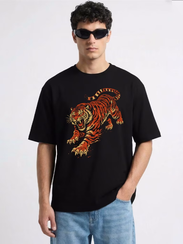Tiger Graphic Printed Streetwear Oversized T-Shirt