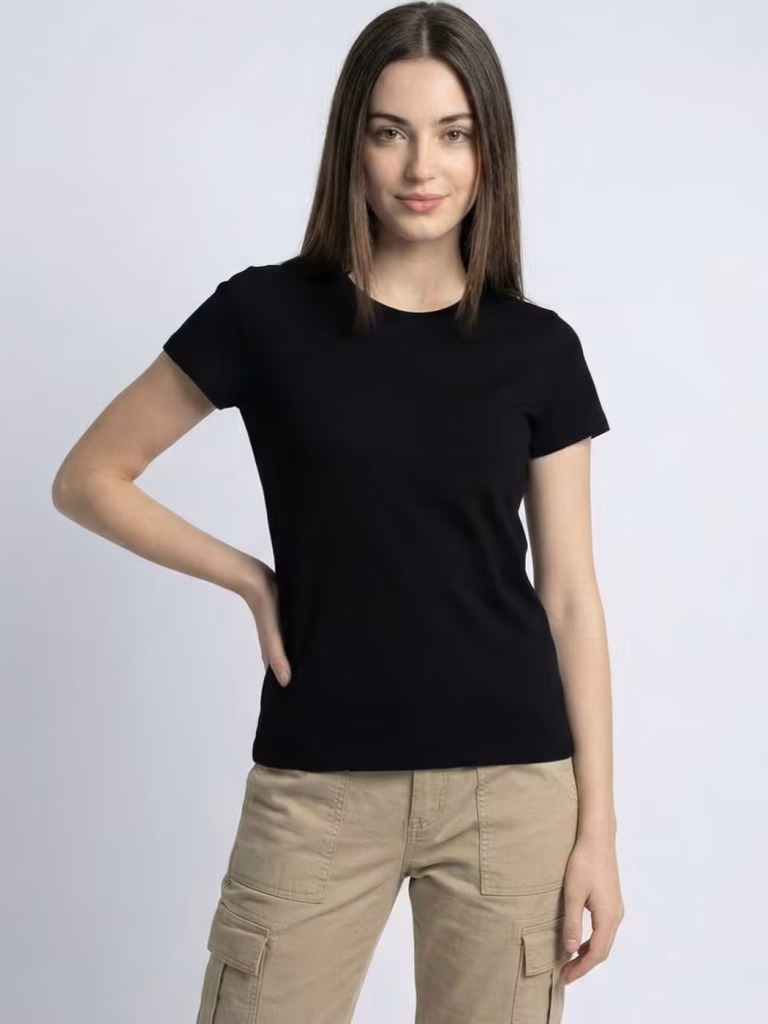 Women’s Plain Black Half Sleeve Round Neck T-Shirt