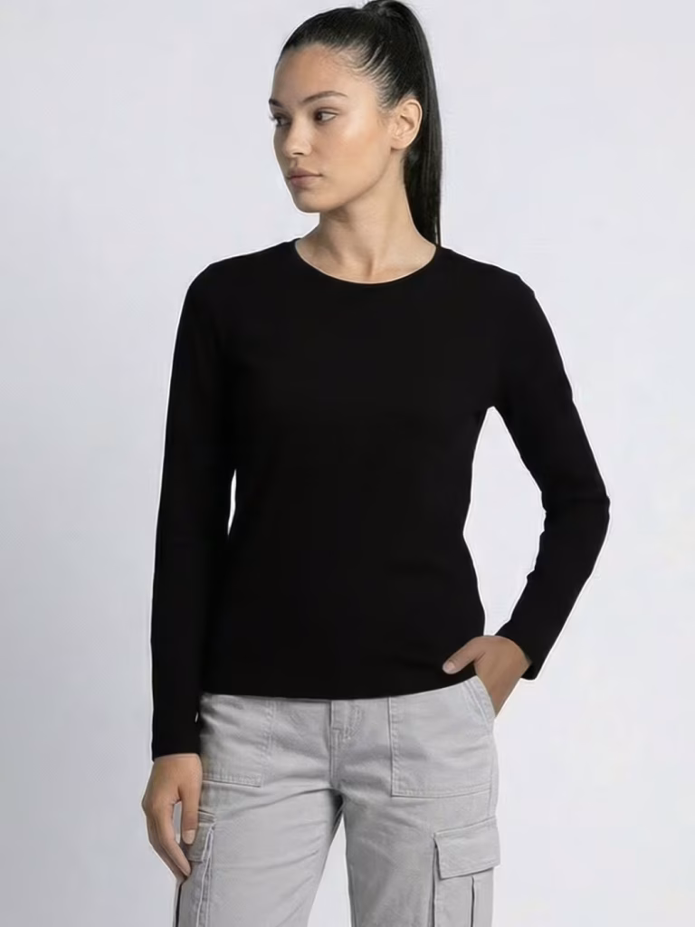 Women’s Plain Black Full Sleeve Round Neck T-Shirt
